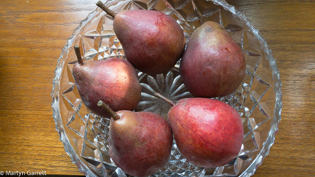 I'm not convinced that the pears are fully ripe so they've gone in a fruit bowl where we can keep a check on them for ripeness. I find pears much more difficult to judge for ripeness than apples. Apples that part from the tree as easily would certainly be ripe but it seems pears need to be picked and then left to ripen.